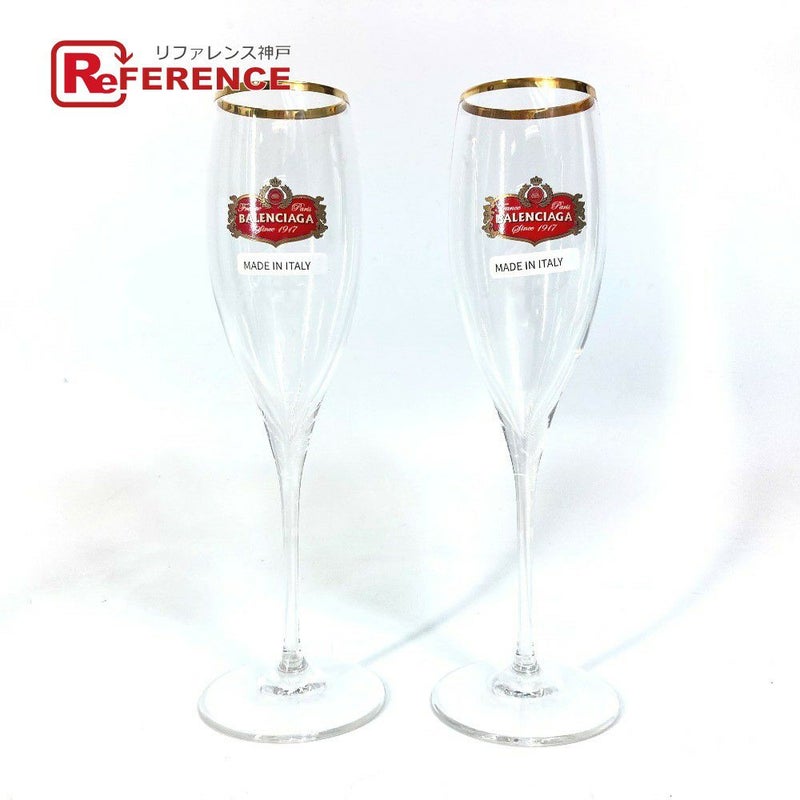 【未使用】バレンシアガ 透明 BALENCIAGA バレンシアガ 734692 コップ インテリア ロゴ ペア 2つセット シャンパングラス ガラス レディース クリア 未使用 【中古】