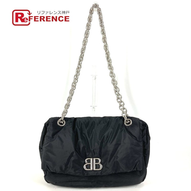 【中古良品】バレンシアガ 黒色 BALENCIAGA バレンシアガ 765966 BBロゴ MONACO S モナコ カバン Wチェーン チェーンバッグ 斜め掛け フラップ ショルダーバッグ ナイロン ユニセックス ブラック 【中古】