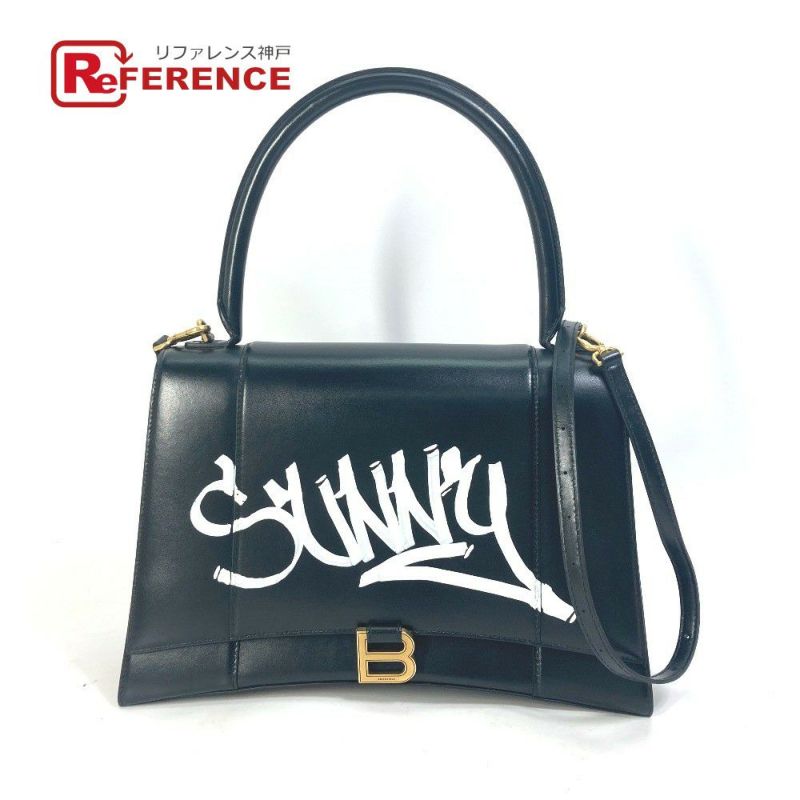 バレンシアガ 黒色 BALENCIAGA バレンシアガ 592823 斜め掛け アワーグラス SUNNY ロゴ 2WAY ショルダーバッグ カバン ハンドバッグ レザー レディース ブラック 【中古】