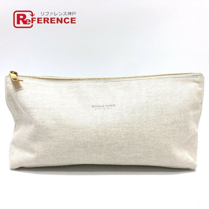 【中古良品】ボッテガヴェネタ 薄茶色 BOTTEGA VENETA ボッテガヴェネタ ロゴ ポーチ セカンドバッグ キャンバス レディース ベージュ 【中古】