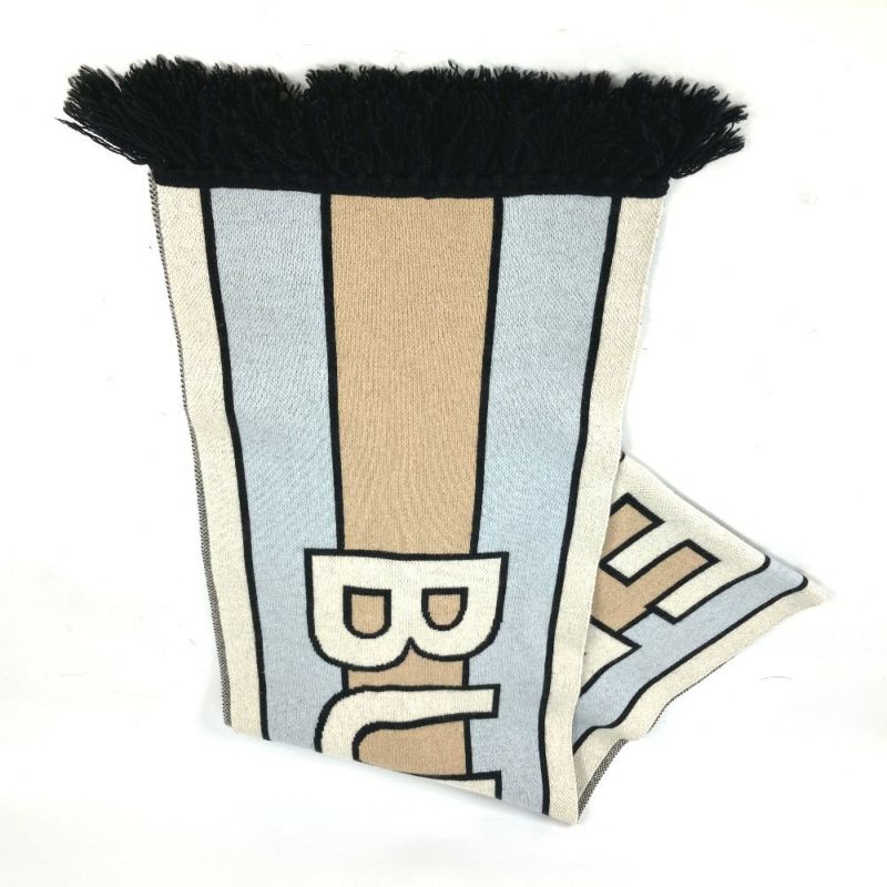 【美品】バーバリー 薄茶色 BURBERRY バーバリー 8021740 ボーダー ロゴ フリンジ マフラー カシミヤ レディース ベージュ 【中古】