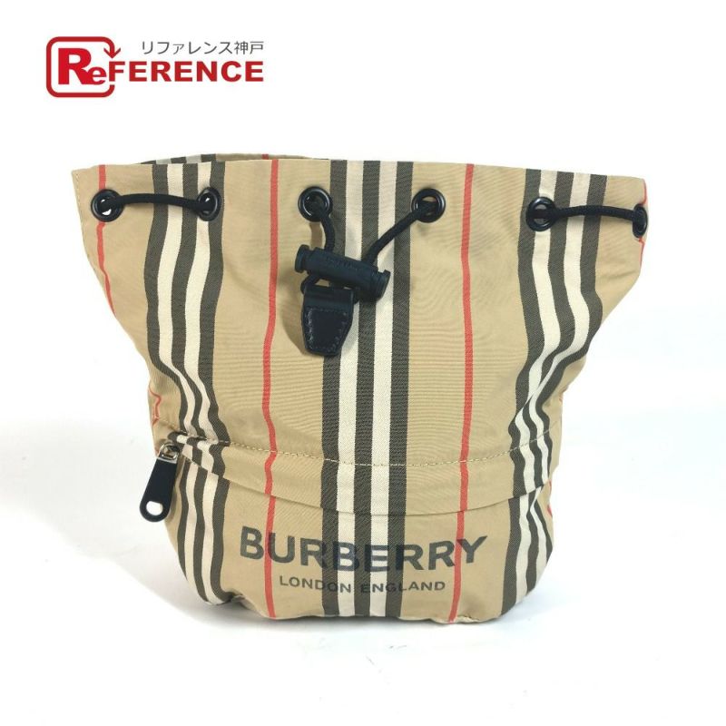 【中古良品】バーバリー 薄茶色 BURBERRY バーバリー ハンドバッグ チェック 巾着 ポーチ ナイロン レディース ベージュ 【中古】