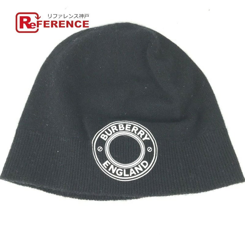【中古良品】バーバリー 黒色 BURBERRY バーバリー 8045083 ロゴ グラフィック ビーニー 帽子 ニット帽 ニットキャップ ニット帽 カシミヤ レディース ブラック 【中古】