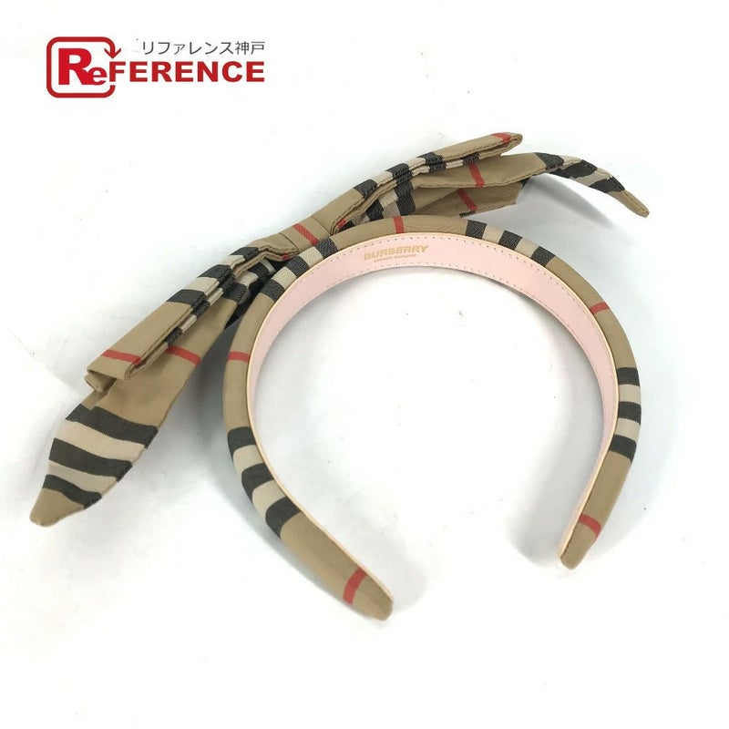 【未使用】バーバリー 薄茶色 BURBERRY バーバリー チェック リボン ヘアアクセサリー ヘアバンド ヘッドバンド カチューシャ キャンバス レディース ベージュ 未使用 【中古】