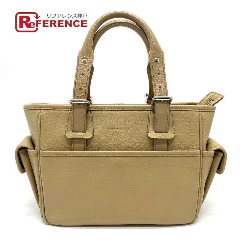 【中古良品】バーバリー 薄茶色 BURBERRY バーバリー ロゴ サイドポケット カバン トートバッグ ハンドバッグ レザー レディース ベージュ 【中古】