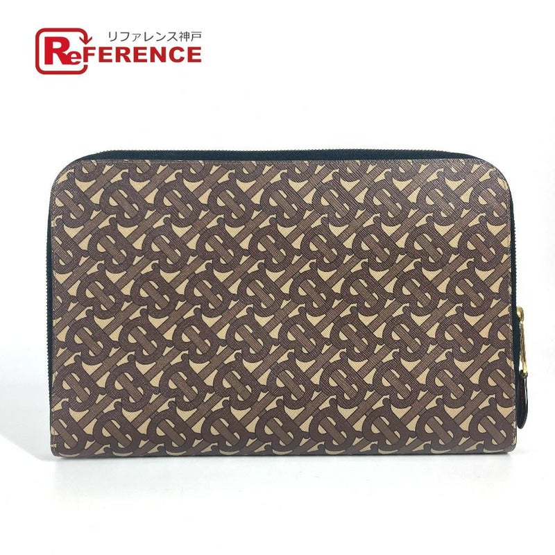 【美品】バーバリー 茶色 BURBERRY バーバリー TB ロゴ カバン セカンドバッグ ポーチ クラッチバッグ レザー/キャンバス ユニセックス ブラウン 【中古】