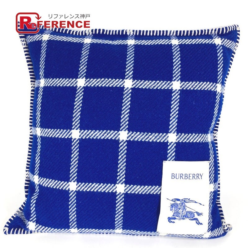 【未使用】バーバリー 青色 BURBERRY バーバリー 8073743 チェック 新タグ ピロー 枕 インテリア クッション ウール ユニセックス ブルー 未使用 【中古】