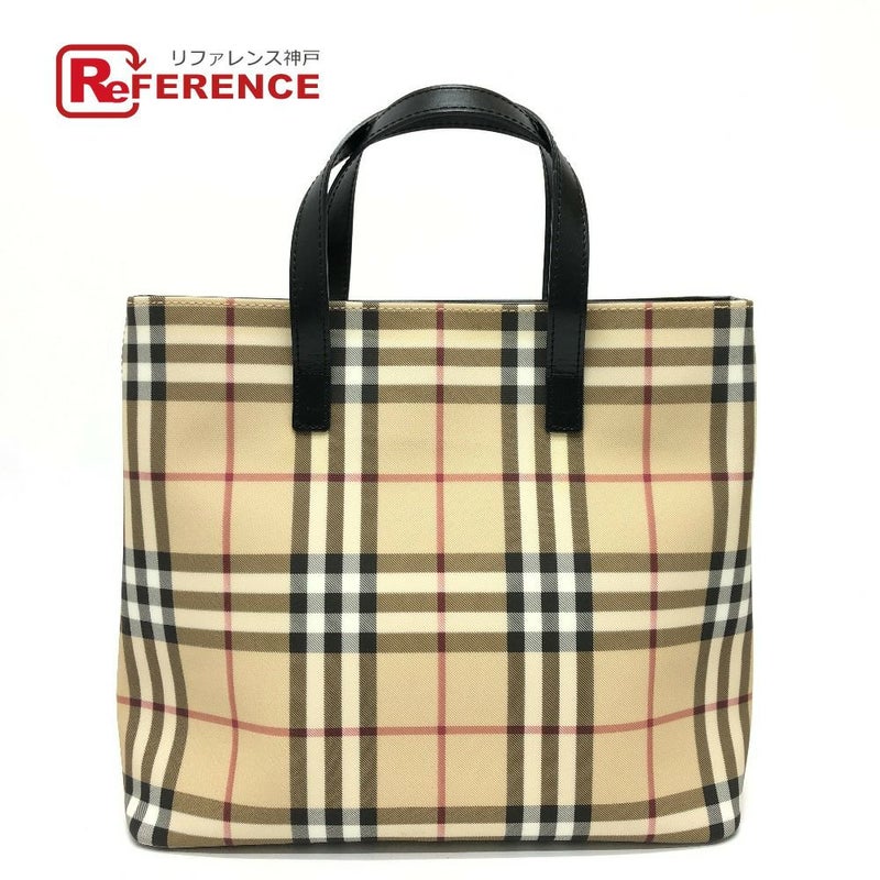 【中古良品】バーバリー 薄茶色 BURBERRY バーバリー チェック トートバッグ カバン ハンドバッグ PVC/レザー レディース ベージュ 【中古】