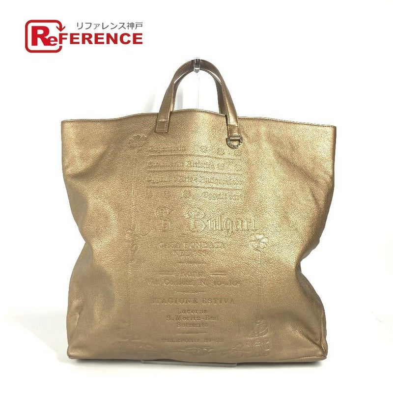 【中古良品】ブルガリ 金色 BVLGARI ブルガリ ロゴ S.bulgari ハンドバッグ カバン 縦型 トートバッグ レザー ユニセックス ゴールド 【中古】