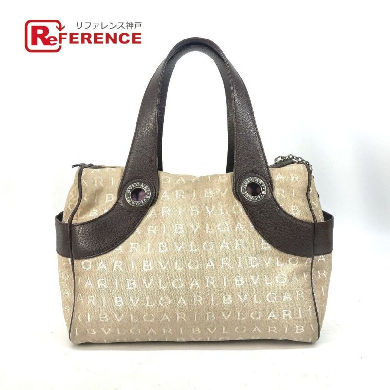 【中古良品】ブルガリ 薄茶色 BVLGARI ブルガリ ロゴマニア カバン ミニボストンバッグ ハンドバッグ キャンバス/レザー レディース ベージュ 【中古】