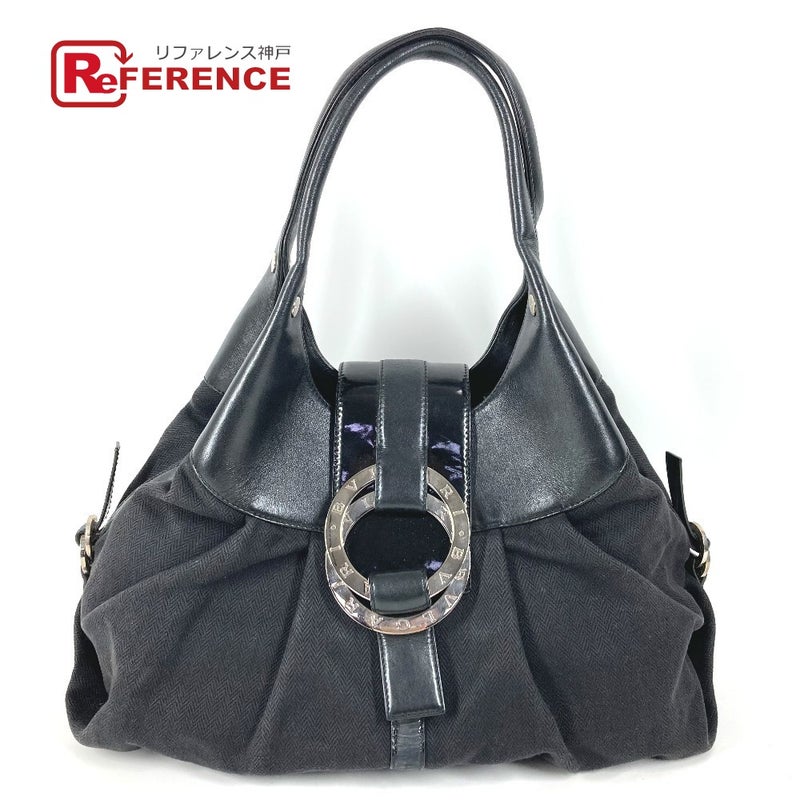 ブルガリ 黒色 BVLGARI ブルガリ ダブル コイン ブルガリブルガリロゴ チャンドラ トートバッグ 肩掛け カバン ショルダーバッグ レザー /キャンバス レディース ブラック 【中古】