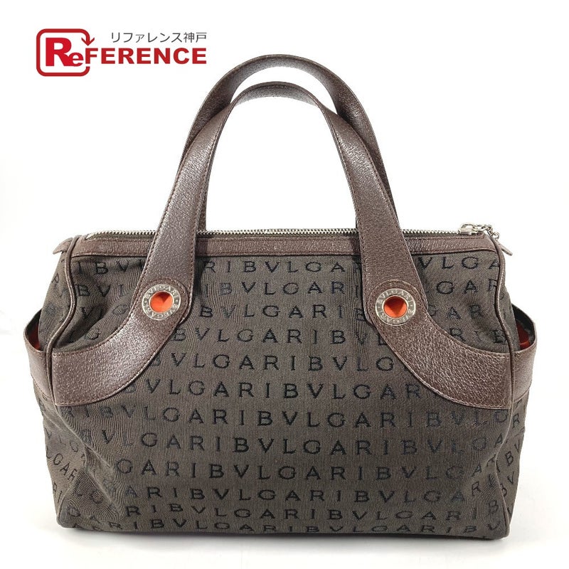 【中古良品】ブルガリ 茶色 BVLGARI ブルガリ ロゴマニア ミニボストンバッグ カバン トートバッグ ハンドバッグ レザー/キャンバス ユニセックス ブラウン 【中古】