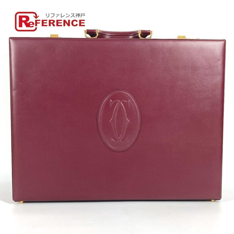 【中古良品】カルティエ 赤色 CARTIER カルティエ マストライン ロゴ トランク ビジネスバッグ BOX ボックス ハンドバッグ レザー ユニセックス ワインレッド 【中古】