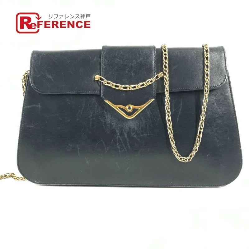 カルティエ 紺色 CARTIER カルティエ ヴィンテージ サファイアライン カバン チェーン 斜め掛け ポシェット フラップ ショルダーバッグ レザー ユニセックス ネイビー 【中古】