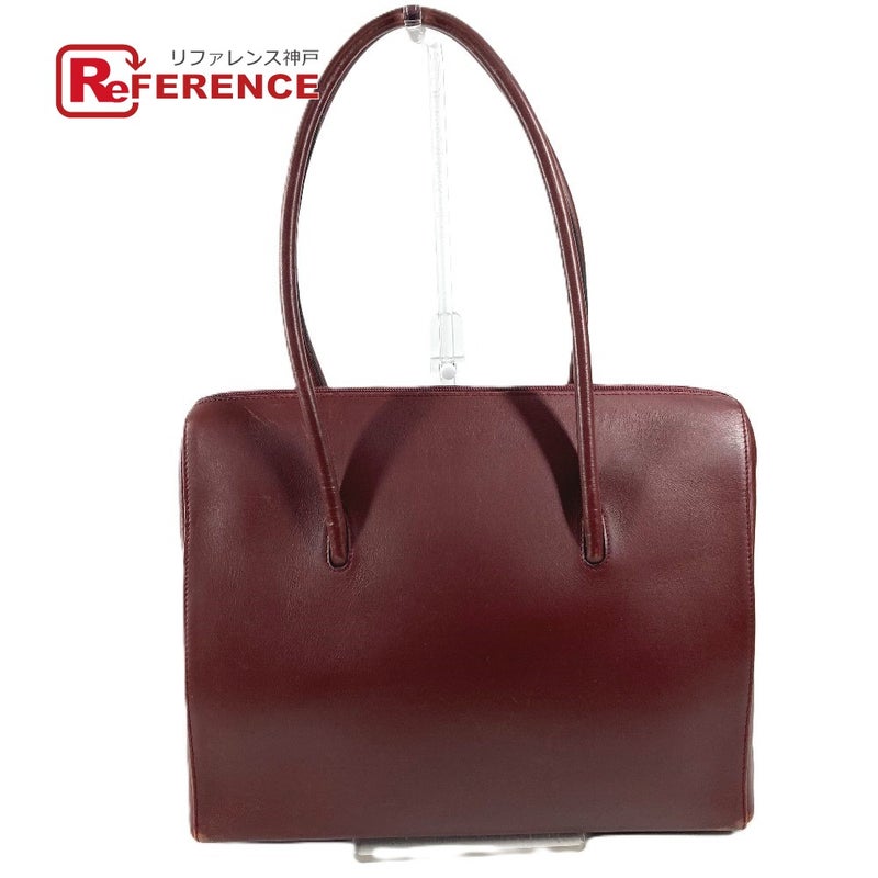カルティエ 赤色 CARTIER カルティエ マストライン ロゴ カバン 肩掛け トートバッグ ビジネスバッグ ショルダーバッグ レザー ユニセックス ワインレッド 【中古】