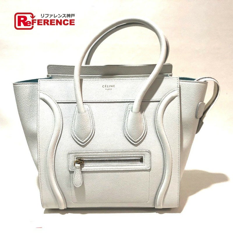 【美品】セリーヌ 青色 CELINE セリーヌ 167793 トートバッグ マイクロショッパー カバン ラゲージ ハンドバッグ レザー レディース ホワイト オフホワイト×スカイブルー 【中古】