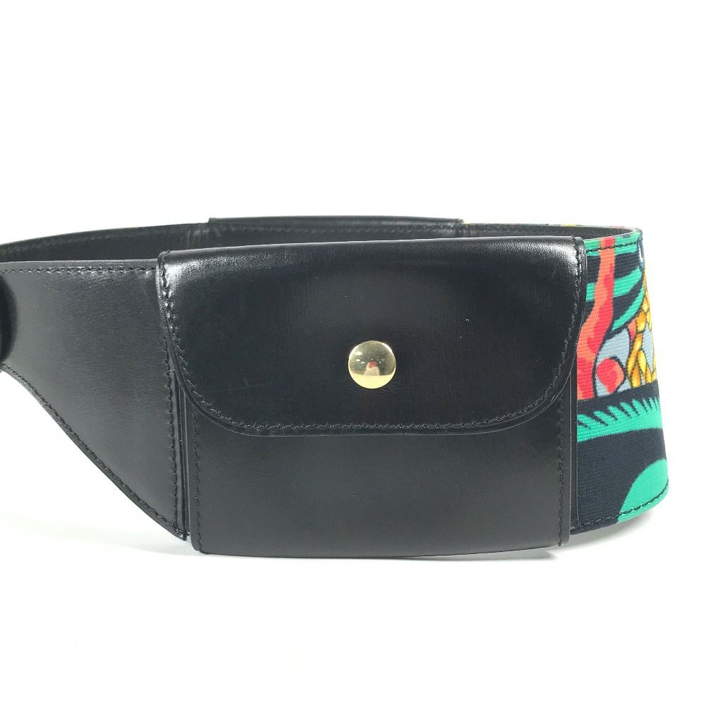 セリーヌ 黒色 CELINE セリーヌ ヴィンテージ 太ベルト スカーフ柄 ポーチ付き ウエストバッグ ベルトバッグ カバン ベルト レザー /シルク レディース ブラック 【中古】