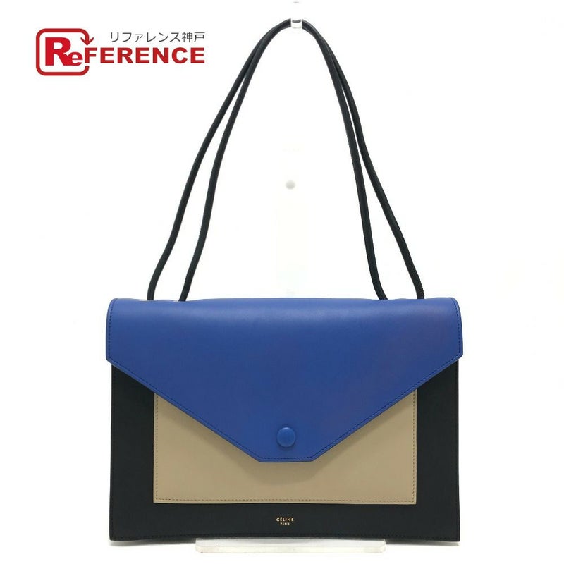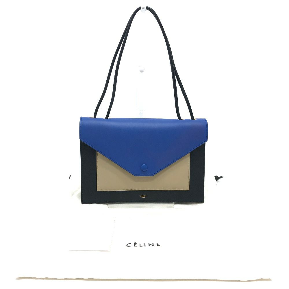 【新品同様】セリーヌ 黒色 CELINE セリーヌ 2015年春夏 トリコロール ポケットミディアムクラッチ 2way 肩掛け ショルダーバッグ クラッチバッグ レザー レディース ブルー ブラック 新品同様 【中古】