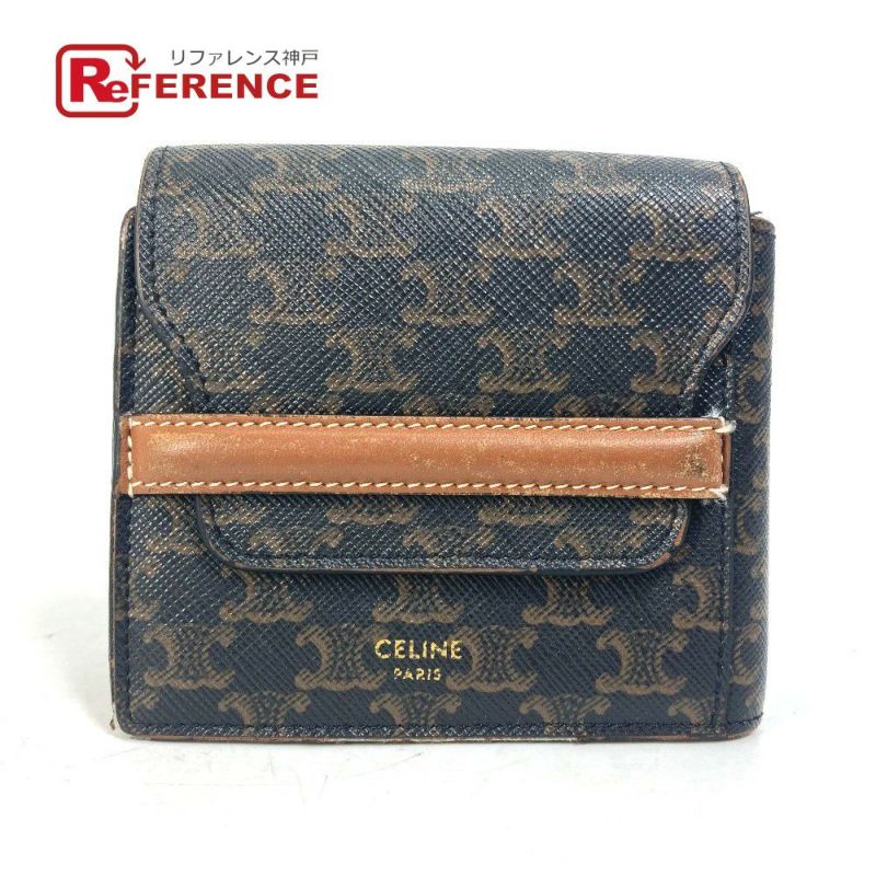 セリーヌ 茶色 CELINE セリーヌ カードケース トリオンフ 札入れ フラップ付き 2つ折り財布 レザー メンズ ブラウン 【中古】