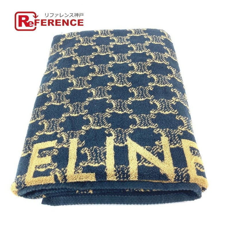 【美品】セリーヌ 薄茶色 CELINE セリーヌ 29GAC115P バスタオル インテリア ひざかけ ブランケット トリオンフ ロゴ ビーチタオル タオル コットン レディース ベージュ 【中古】