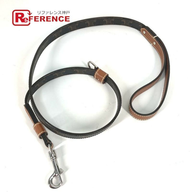 【美品】セリーヌ 茶色 CELINE セリーヌ 4M1582EAV.04LI トリオンフ ドッグリーシュ 犬 ペット ドッグ リード レザー/キャンバス ユニセックス タン ブラウン 【中古】
