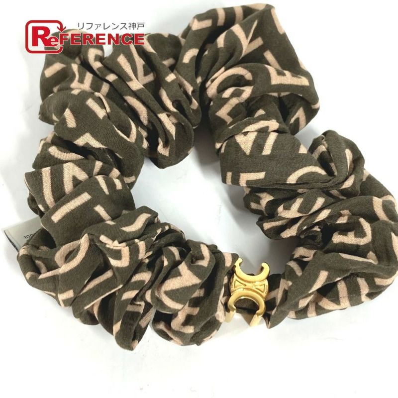 【中古良品】セリーヌ 緑色 CELINE セリーヌ トリオンフ ロゴ ヘアアクセサリー ヘアゴム シュシュ シルク /ゴム レディース カーキ 【中古】