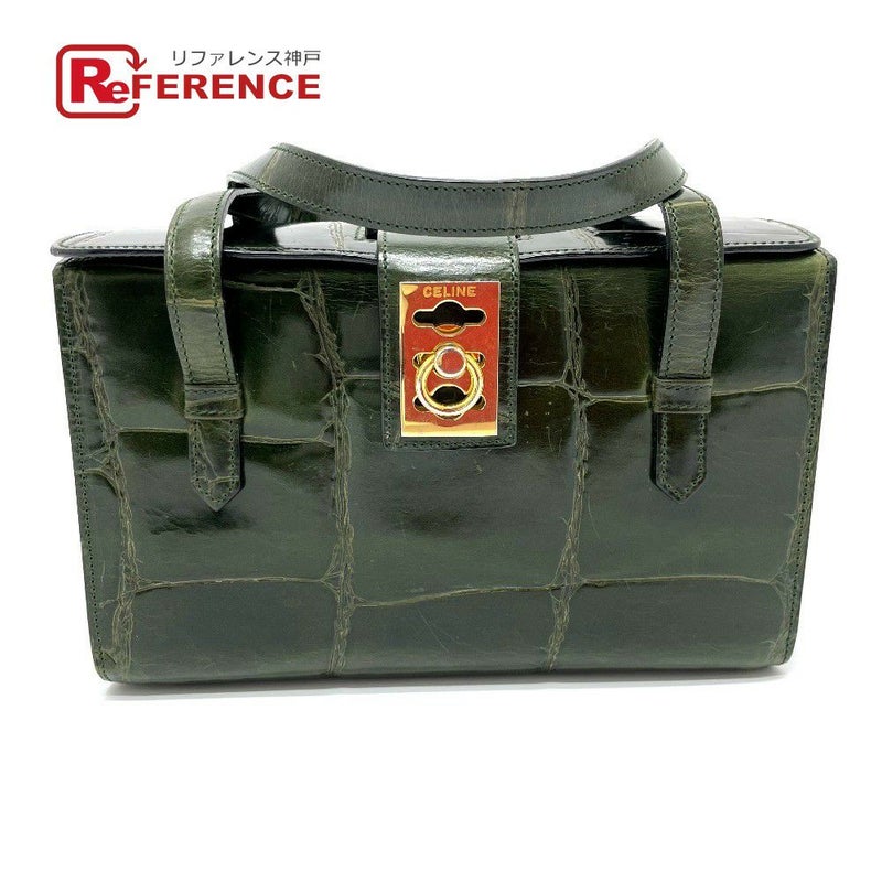 セリーヌ 緑色 CELINE セリーヌ クロコ型押し ハンドバッグ カバン バニティ ボックス型 ハンドバッグ レザー レディース グリーン 【中古】