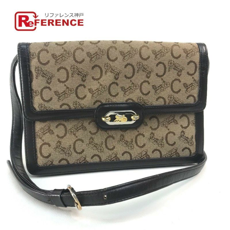 セリーヌ 茶色 CELINE セリーヌ 馬車金具 ロゴ ヴィンテージ カバン オールド ショルダーバッグ キャンバス/レザー レディース ベージュ×ダークブラウン 【中古】