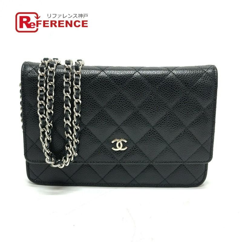 【美品】シャネル 黒色 CHANEL シャネル AP0250 マトラッセ ココマーク クラシック チェーンウォレット 斜め掛け カバン ショルダーバッグ キャビアスキン レディース ブラック 【中古】