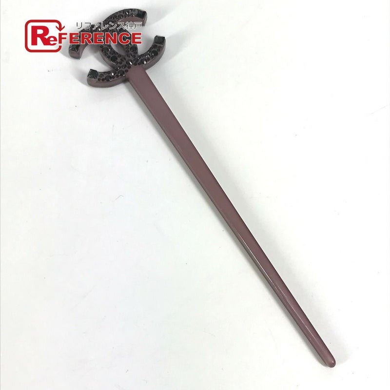 【中古良品】シャネル 紫色 CHANEL シャネル CC ココマーク ストーン かんざし ヘアピック 簪 ヘアアクセサリー ヘアピン プラスチック レディース パープル系 【中古】