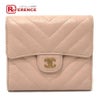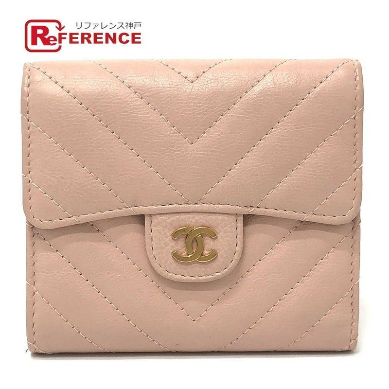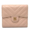 【中古良品】シャネル 薄茶色 CHANEL シャネル Vステッチ シェブロン コンパクト財布 財布 ウォレット 3つ折り財布 ラムスキン レディース ピンクベージュ ベージュ 【中古】