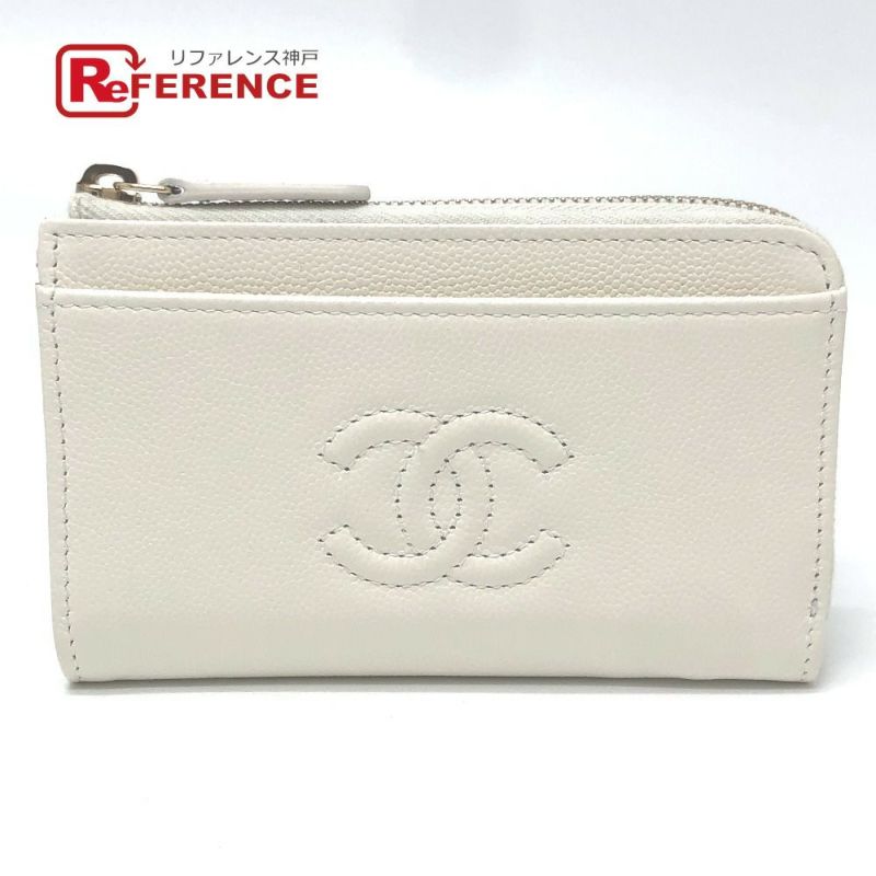 【未使用】シャネル 白色 CHANEL シャネル AP4661 クルーズ コレクション ココマーク フラグメントケース ジップ コンパクトウォレット カードケース キャビアスキン レディース ホワイト 未使用 【中古】