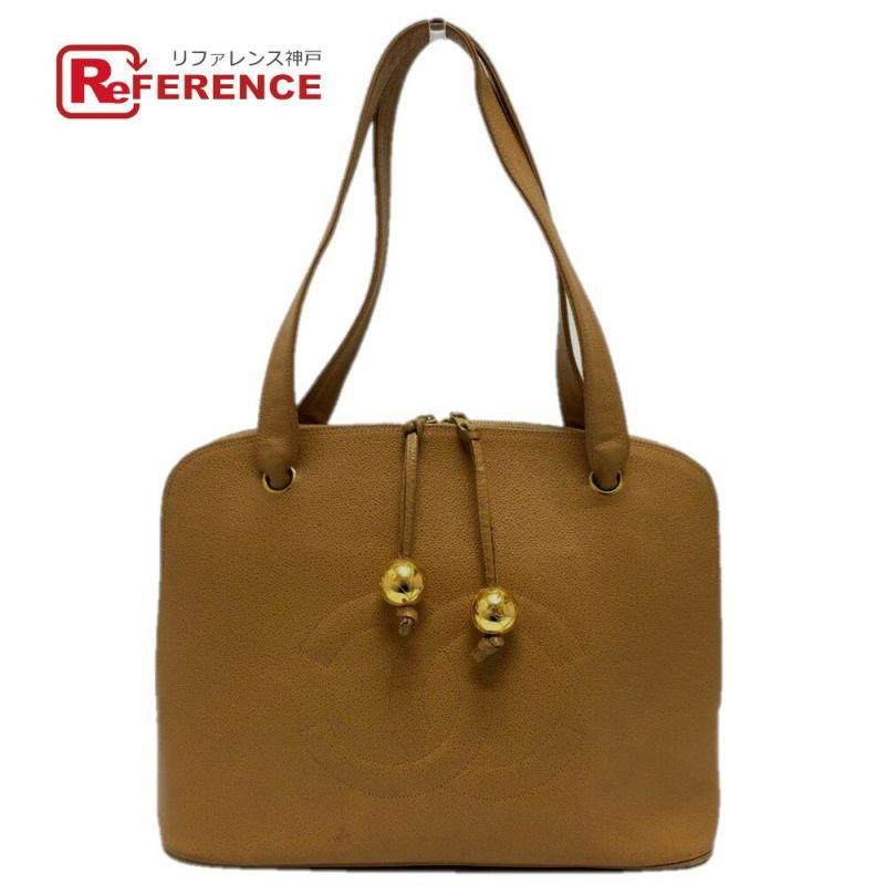 シャネル 薄茶色 CHANEL シャネル ココボール ココマーク カバン 肩掛け トートバッグ キャビアスキン レディース ベージュ 【中古】