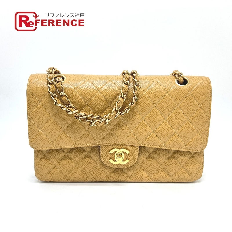 【中古良品】シャネル 薄茶色 CHANEL シャネル A01112 マトラッセ25 マトラッセ 25 Wチェーン カバン バッグ ショルダーバッグ キャビアスキン レディース ベージュ 【中古】