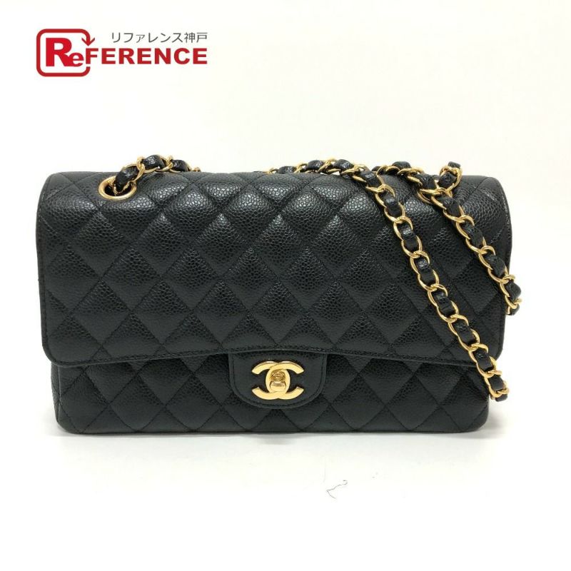 【美品】シャネル 黒色 CHANEL シャネル A01112 ココマーク CC ロゴ マトラッセ25 マトラッセ 25 Wチェーンバッグ 肩掛け 斜め掛け フラップ ショルダーバッグ キャビアスキン レディース G金具 ブラック 【中古】