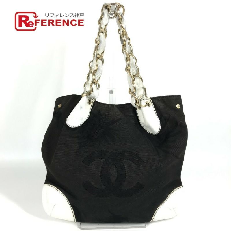 シャネル 黒色 CHANEL シャネル CC ココマーク バイカラー 肩掛け トートバッグ Wチェーンバッグ ショルダーバッグ レザー/キャンバス レディース ブラック 【中古】