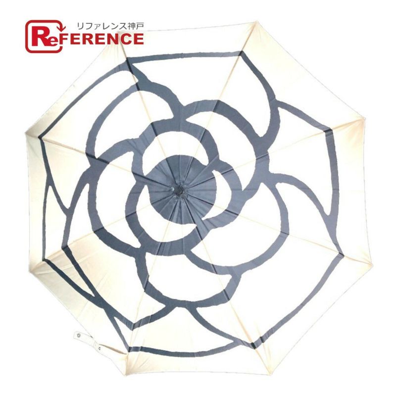 【中古良品】シャネル 薄茶色 CHANEL シャネル インテリア カメリア パラソル 長傘 アンブレラ 傘 ポリエステル レディース ベージュ 【中古】