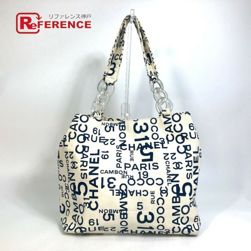 シャネル 紺色 CHANEL シャネル バイシー CCココマーク クリアチェーン カバン 肩掛け トートバッグ キャンバス レディース ホワイト×ネイビー 【中古】