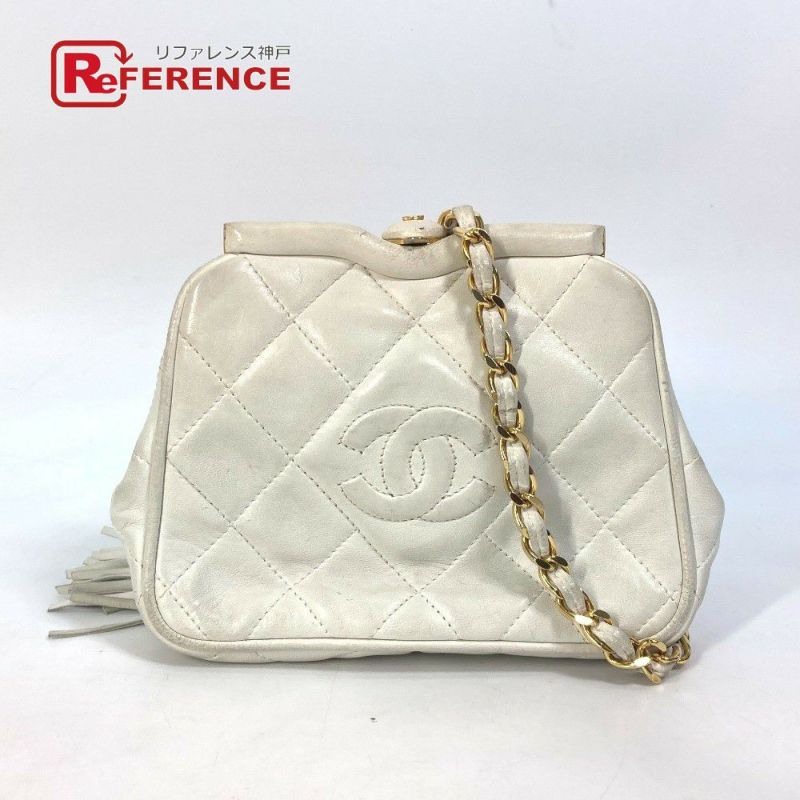 シャネル 白色 CHANEL シャネル ココマーク CC マトラッセ キルティング がま口 フリンジ付 ウエストポーチ チェーン ウエストバッグ ラムスキン レディース ホワイト 【中古】
