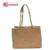 シャネル 薄茶色 CHANEL シャネル トートバッグ デカココ CC ココマーク マトラッセ Wチェーン バッグ カバン ショルダーバッグ キャビアスキン レディース ベージュ 【中古】