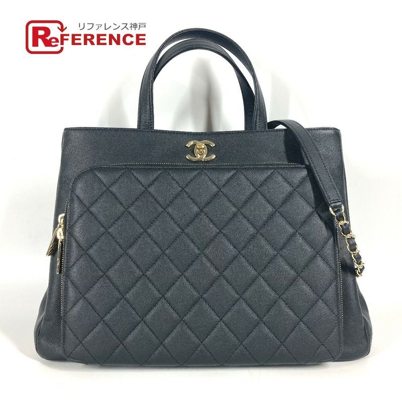 【美品】シャネル 黒色 CHANEL シャネル A93795 CC ココマーク アフィニティ マトラッセ キルティング 2WAYバッグ トートバッグ 斜め掛け チェーン ショルダーバッグ キャビアスキン レディース ブラック 【中古】