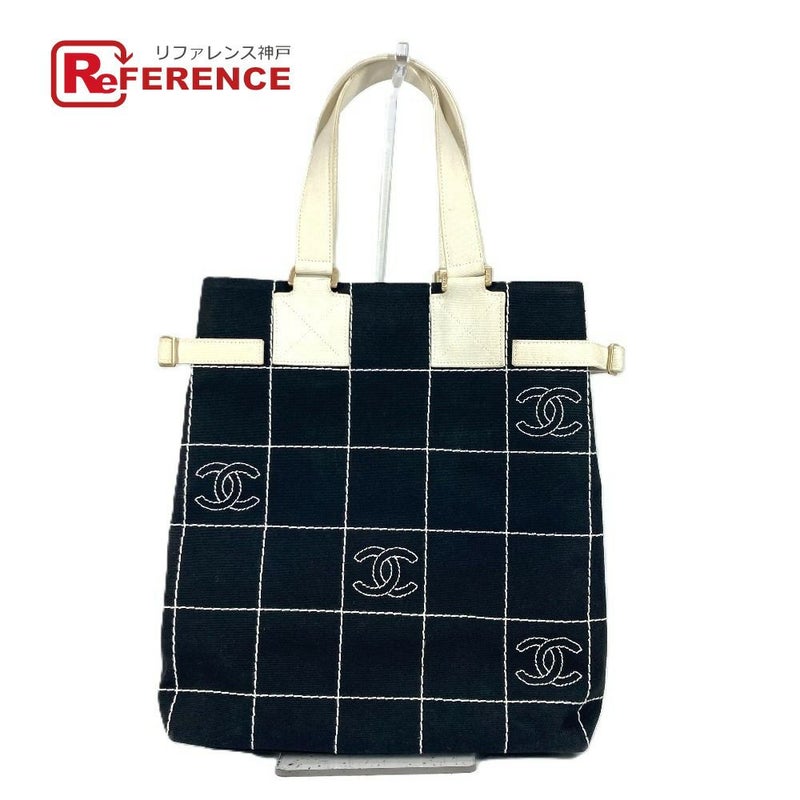 シャネル 黒色 CHANEL シャネル CC ココマーク バイカラー トートバッグ カバン 縦型 ロゴ ショルダーバッグ キャンバス レディース ブラック 【中古】