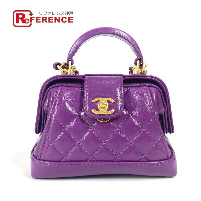 【美品】シャネル 紫色 CHANEL シャネル AP4109 24A キルティング マトラッセ CC ココマーク チェーンクラッチ ミニ ショルダーバッグ レザー レディース パープル 【中古】