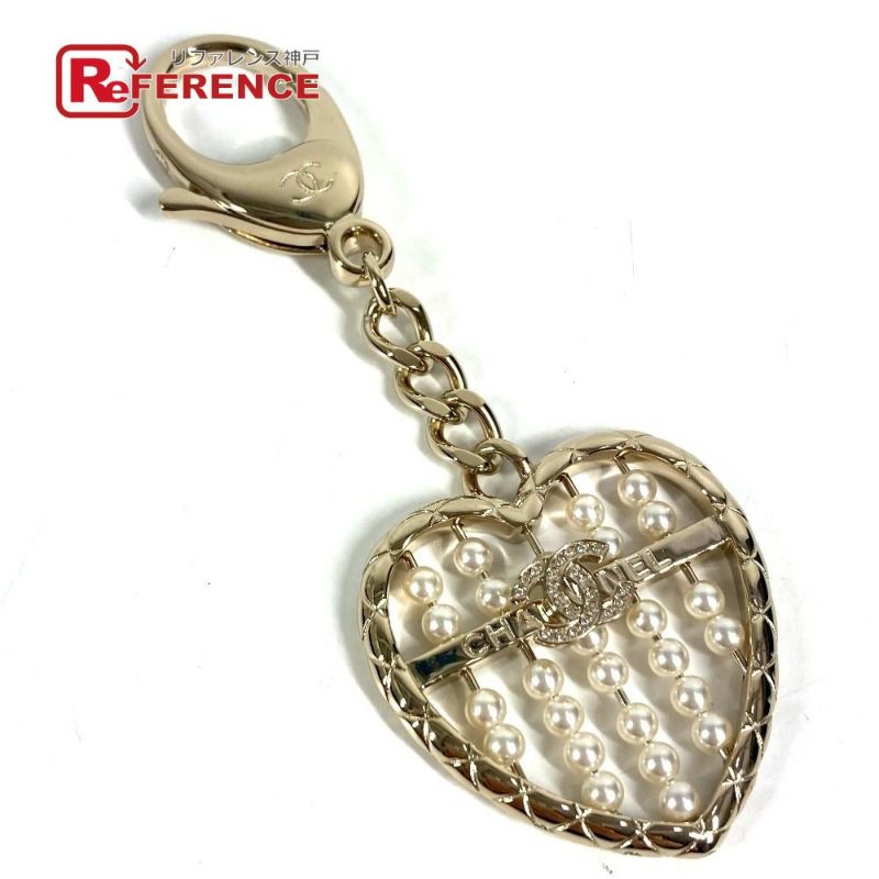 【新品同様】シャネル 金色 CHANEL シャネル ABG045 B25A ハート CC ココマーク ロゴ フェイクパール ラインストーン バッグチャーム チェーン キーホルダー メタル レディース ゴールド 新品同様 【中古】
