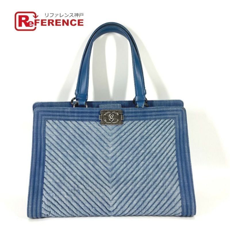 シャネル 青色 CHANEL シャネル ボーイシャネル Vステッチ カバン ショルダーバッグ トートバッグ キャンバス レディース ブルー系 【中古】