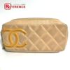 シャネル 薄茶色 CHANEL シャネル カンボンライン CC ココマーク メイクポーチ 化粧ポーチ レザー レディース ベージュ 【中古】