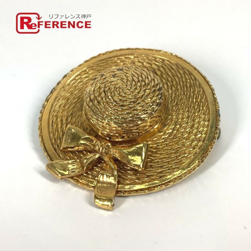 シャネル 金色 CHANEL シャネル ヴィンテージ 麦わら帽子 ハット アクセサリー ブローチ メタル レディース ゴールド 【中古】