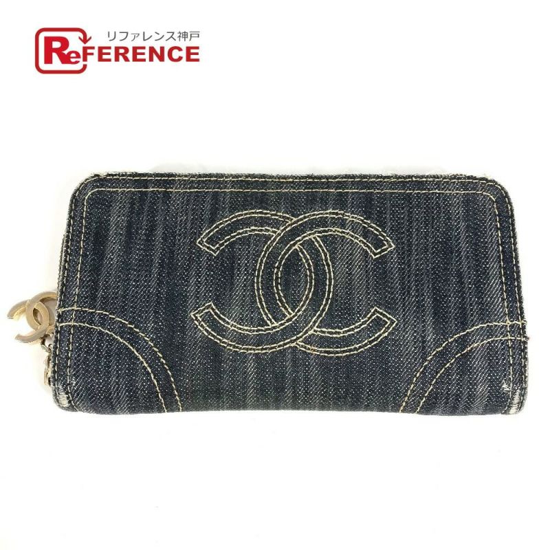 シャネル 青色 CHANEL シャネル A31900 スパークリングデニム CC ココマーク ロゴ ロングウォレット ラウンドファスナー 長財布 デニム レディース ブルー 【中古】