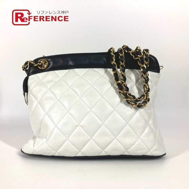 シャネル 白色 CHANEL シャネル ヴィンテージ バイカラー CC ココマーク Wチェーン カバン 肩掛け ショルダーバッグ レザー レディース ホワイト 【中古】