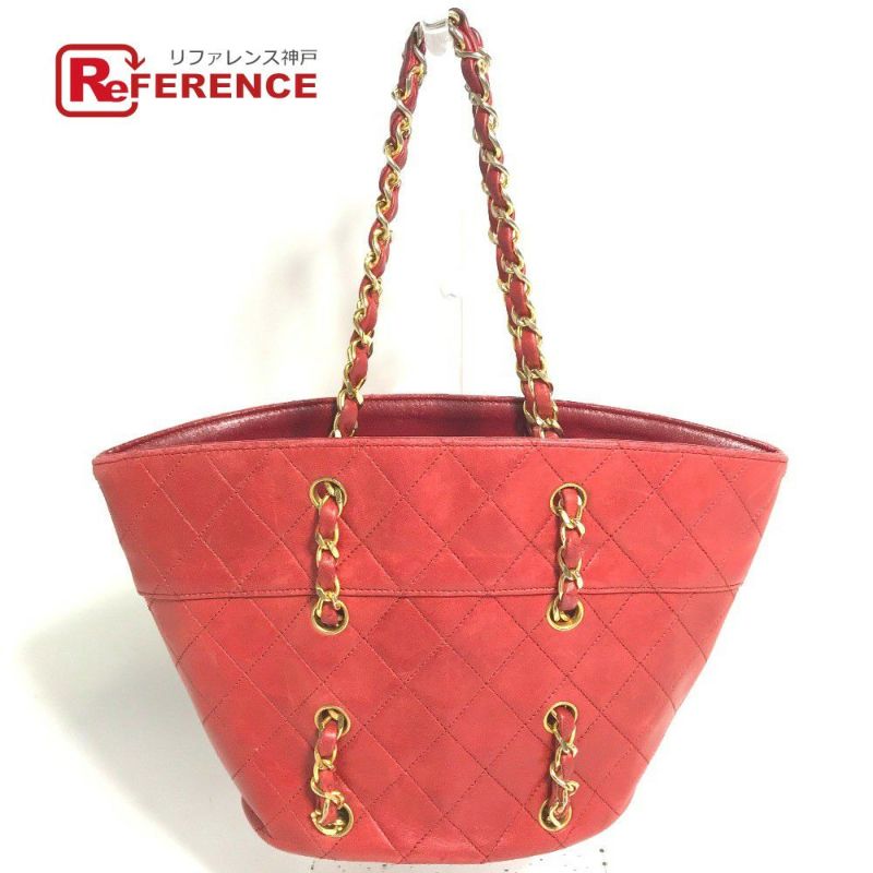 シャネル 赤色 CHANEL シャネル ヴィンテージ マトラッセ キルティング チェーン 肩掛け ハンドバッグ ショルダーバッグ ラムスキン レディース レッド 【中古】